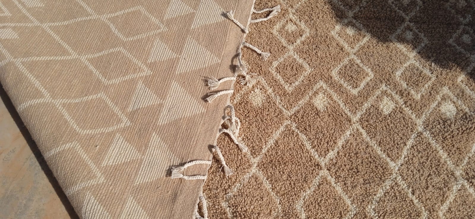 Pile knot rugs, or zrbya rugs in Ait Hamza, are plush warm rugs, and are one of the most popular carpets that the association weaves. The designs and color reflect the culture and nature that define Ait Hamza. In many Tazrbit carpets that the association produces, letters from the Tifinagh alphabet (Berber language) can be found within the designs as well.