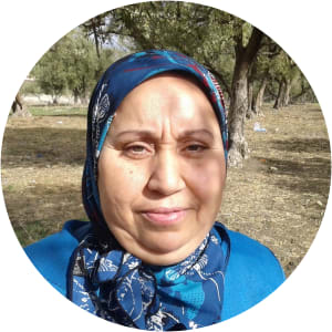 Najia was born in 1965, and has lived in Nezlet beni Amar her entire life. She has one daughter. Najia attended school until she was in sixth grade, and then dropped out to learn the craft of dressmaking from her family members. In her free time she can be seen outside playing sports.